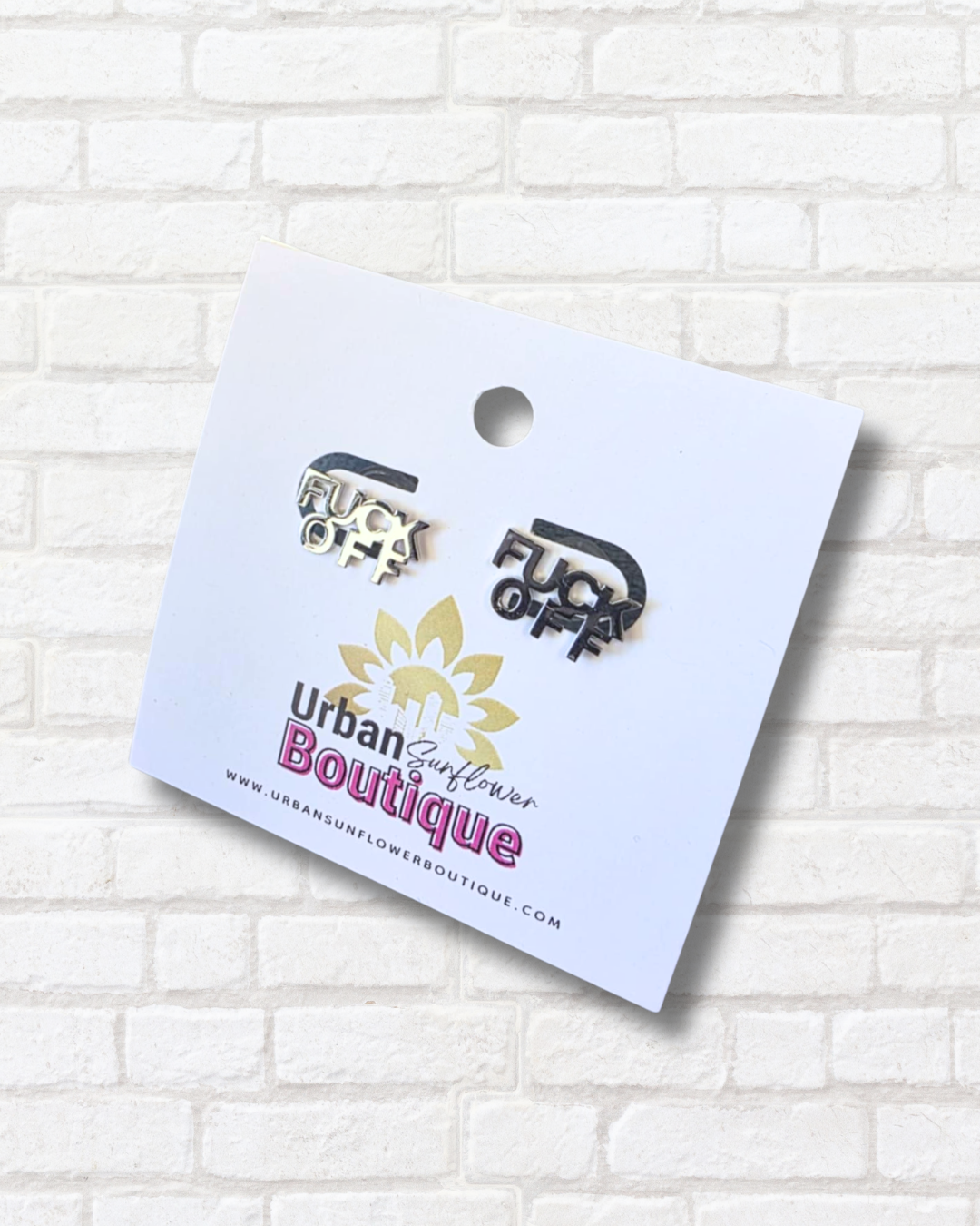 Let these Eff Off Earrings do the talking for you. These cute stud earrings will add a touch of attitude to any outfit, with their playful message of "fuck off." No need for words when you have these sassy studs. (Warning: not suitable for sensitive souls or uptight occasions!) ;)